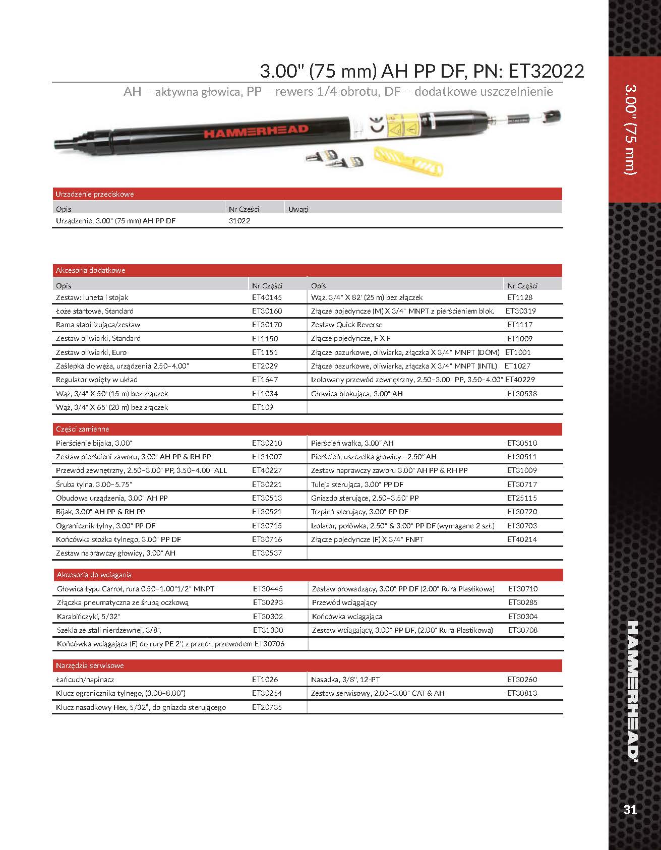 Urządzenia przeciskowe HAMMERHEAD oznaczone symbolem AH, zostały wyposażone w aktywną głowicą udarową wykonujący niezależny ruch posuwisto-zwrotny względem korpusu narzędzia.