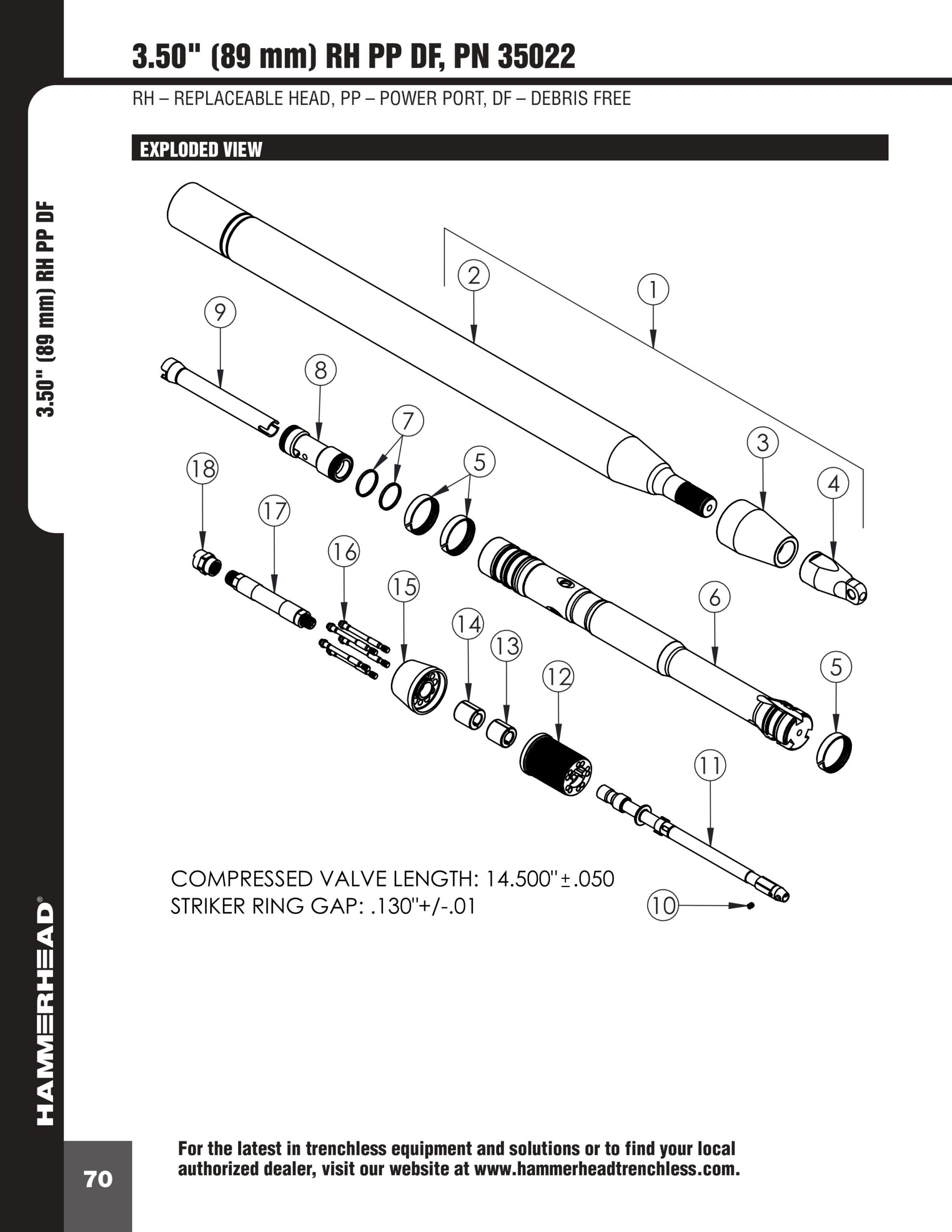 Odporność na ścieranie, bardzo niski współczynnik tarcia bijaka oraz zaawansowana konstrukcja sprawiają, że maszyny HAMMERHEAD to inwestycja na lata. Specjalna konstrukcja tylnego stożka Debris Free Tailcone zastosowana w wybranych modelach z symbolem DF skutecznie zapobiega przedostawaniu się zanieczyszczeń i gruntu do wnętrza narzędzia.